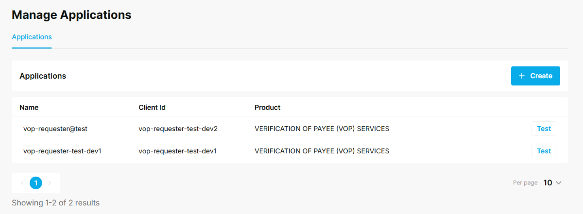 The user can choose the required product from the dropdown. To test the app, the user should authenticate. VOP Requests can be sent using Banfico's Account Verification Requester application,